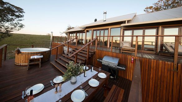 Step onto the 100 sqm balcony, drag your eyes away from the view for a minute and you'll discover a timber-panelled hot tub, a gas BBQ, dining table and sun lounges to make the most of those amazing mountain and valley sunset views. After dinner, relax in a camp chair, warming around a firepit in the cool mountain air and gaze at the never-ending stars.